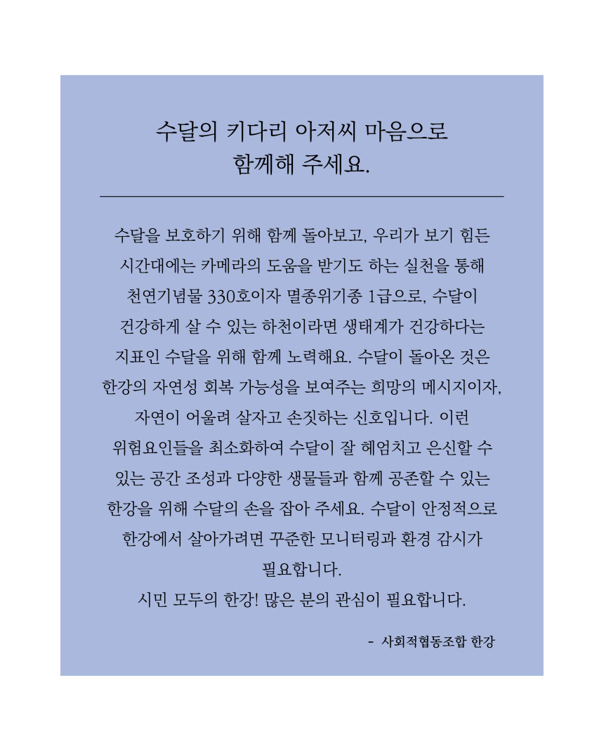 한강, 수달이 행복하게 살 수 있는 곳이 되길 바라는 마음으로