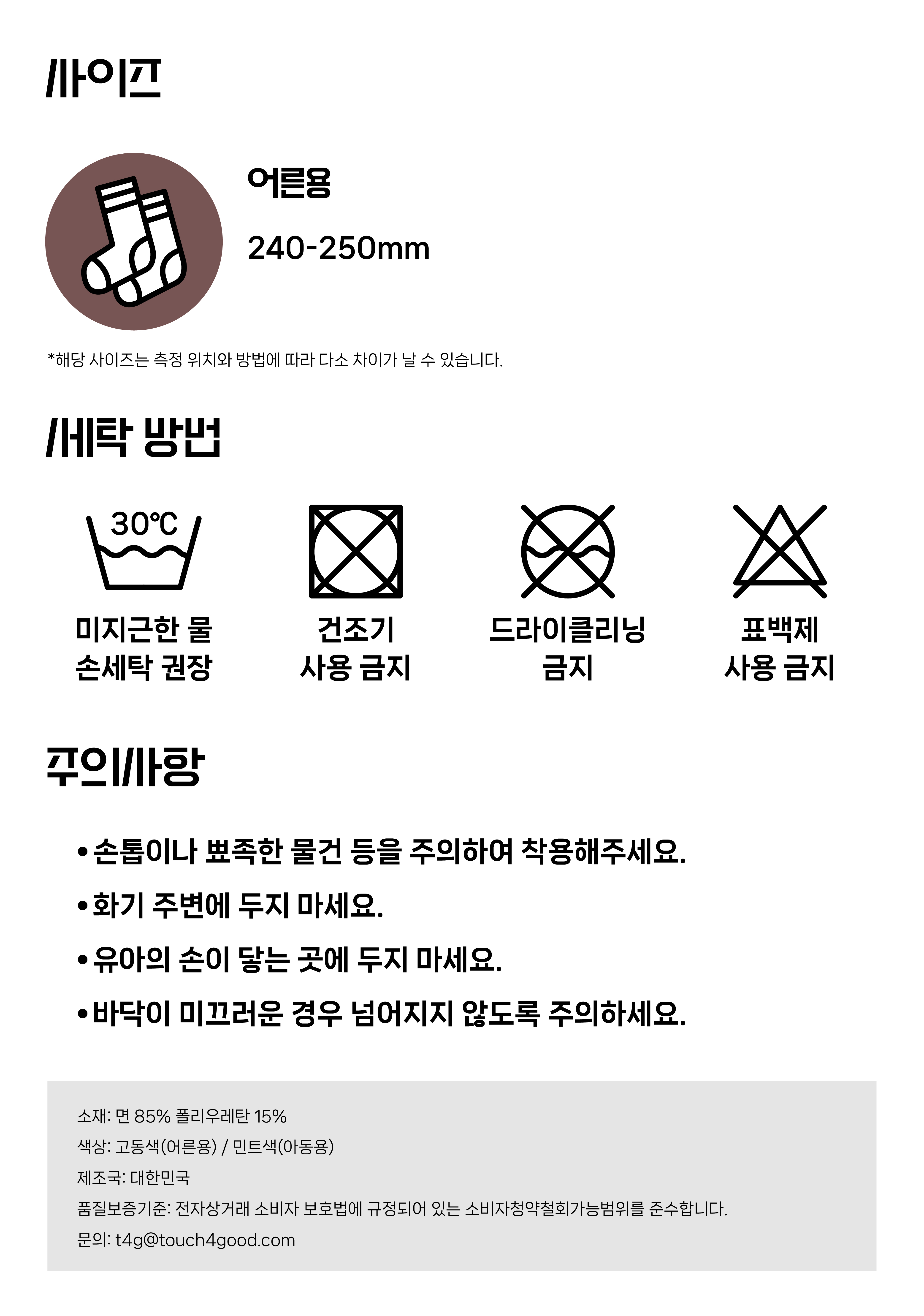 어른용 양말은 달수의 털 색상인 고동색으로 디자인했습니다.