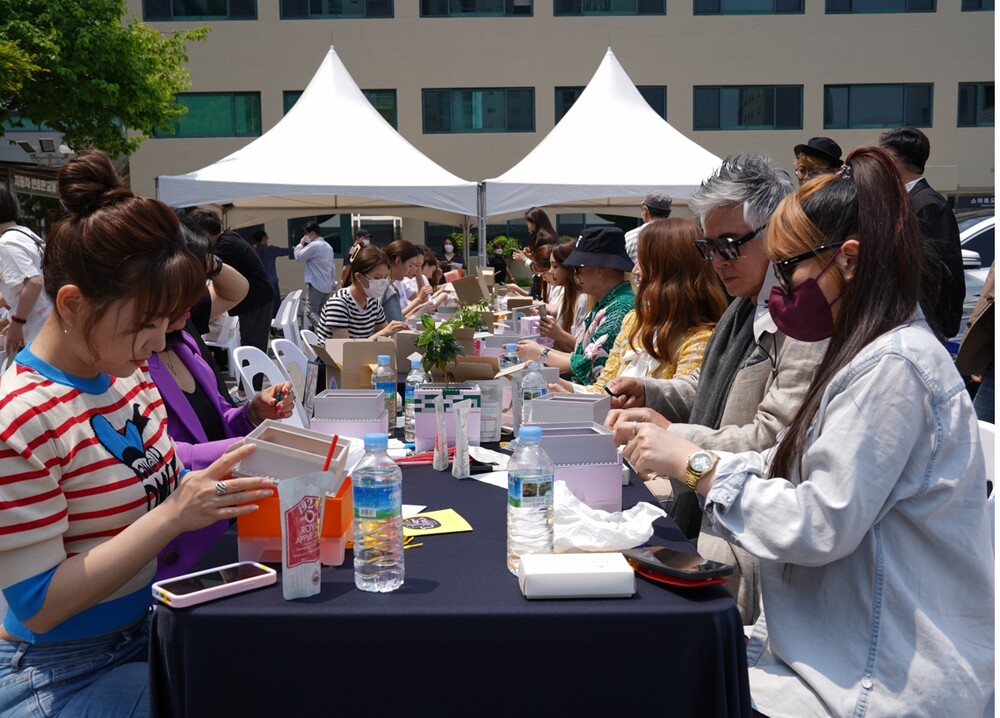 스타가 직접 디자인하고 제작한 세상에 하나뿐인 친환경 화분에 사인과 친필 메시지를 같이 드립니다.