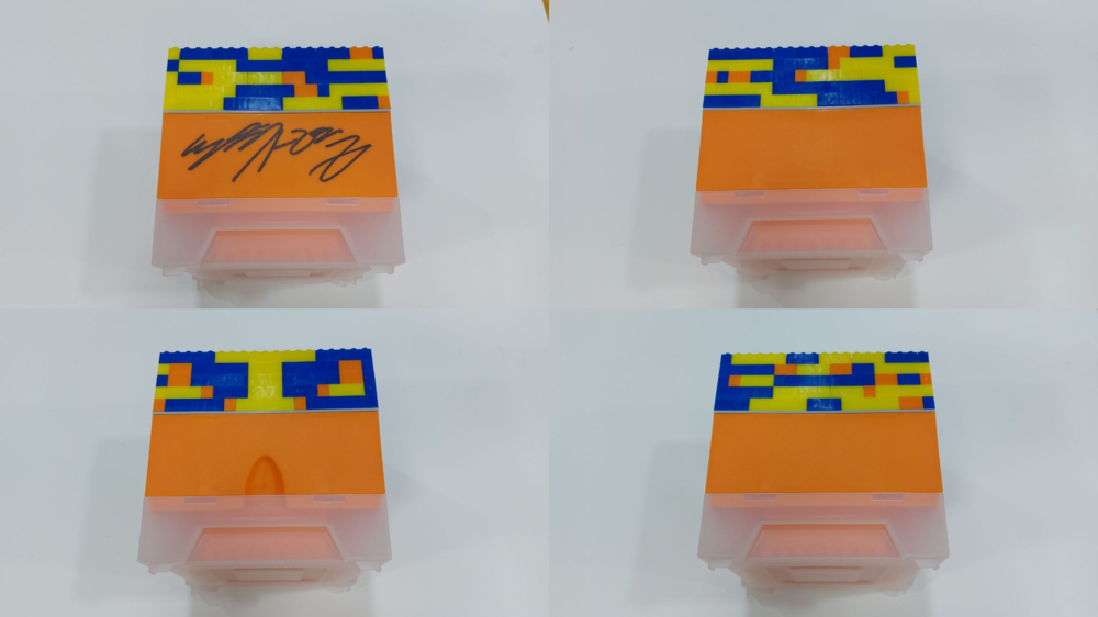 재활용 플라스틱 블럭으로 만들어져 4면이 모두 다르답니다.