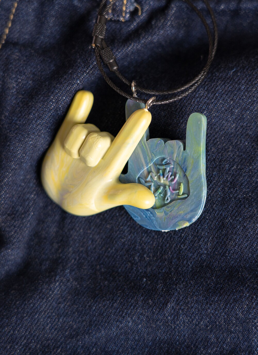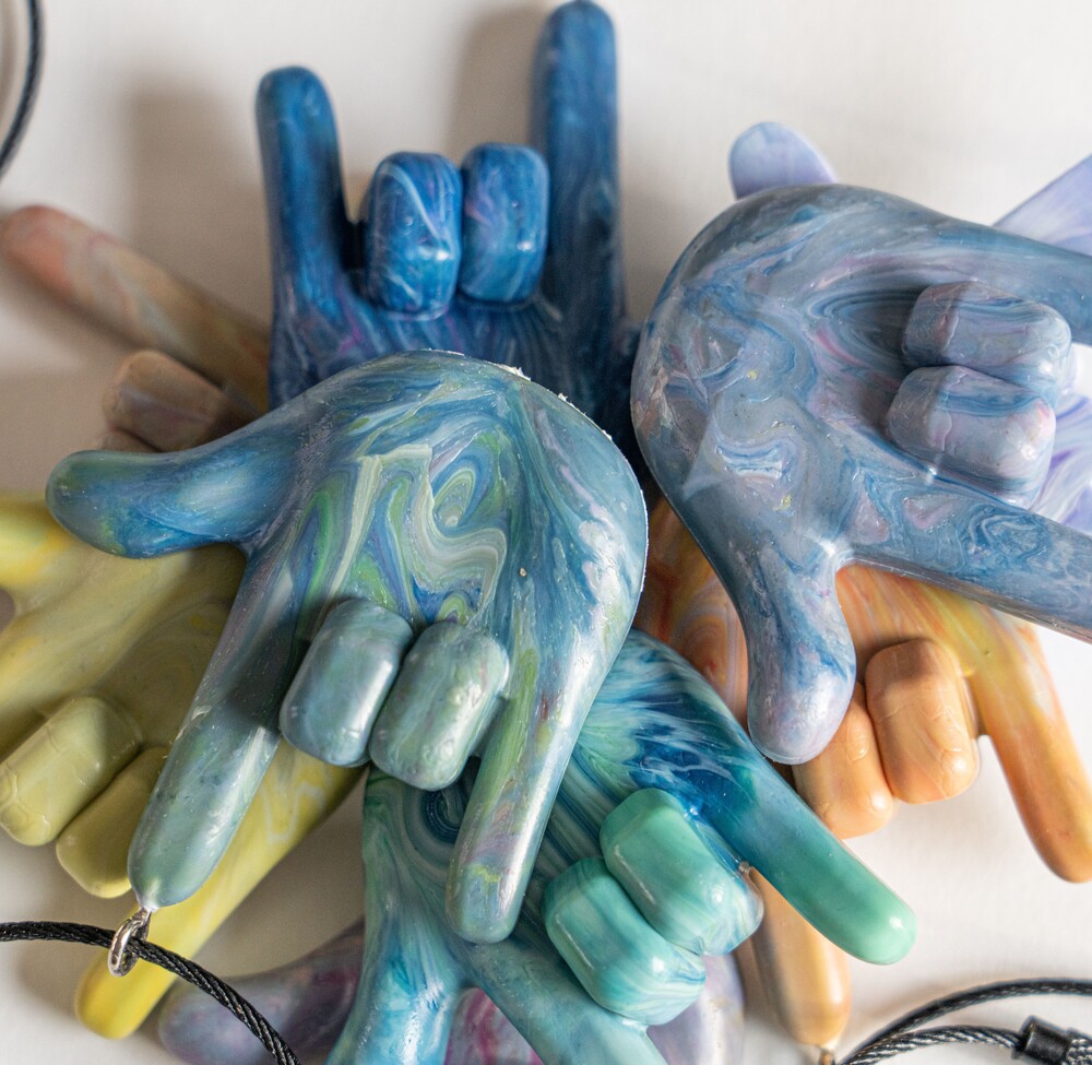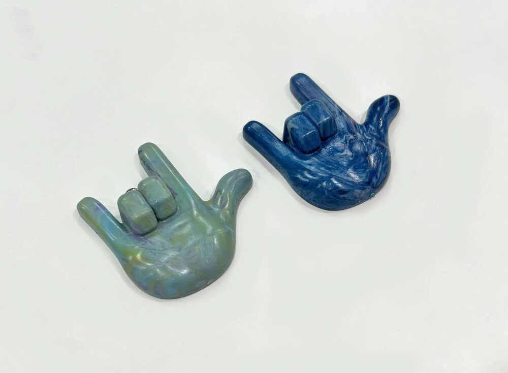 '사랑해' 라는 의미를 가진 수어를 활용해 수어 키링을 제작하였습니다.