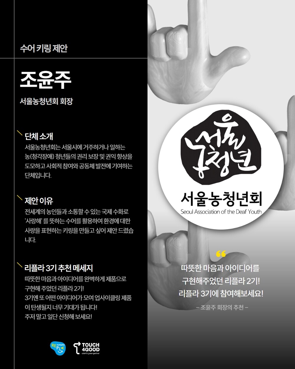 서울농청년회 회장 조윤주님의 인터뷰 내용도 확인해보세요!