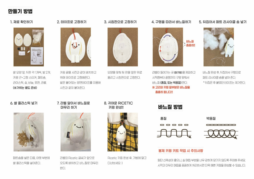 손바느질 한 땀씩 채워가는 나만의 쌀알 친구 키링 키트.