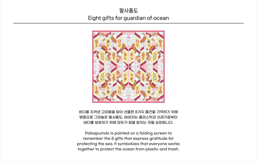팔사품도를 독창적으로 표현한 한국화 작가 박선양과 협력하여 자체적으로 제작한 일러스트입니다.
