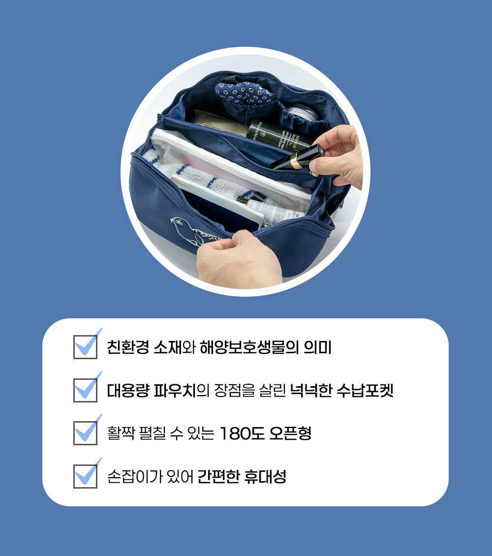 대용량 파우치의 장점을 살림 넉넉한 수납포켓