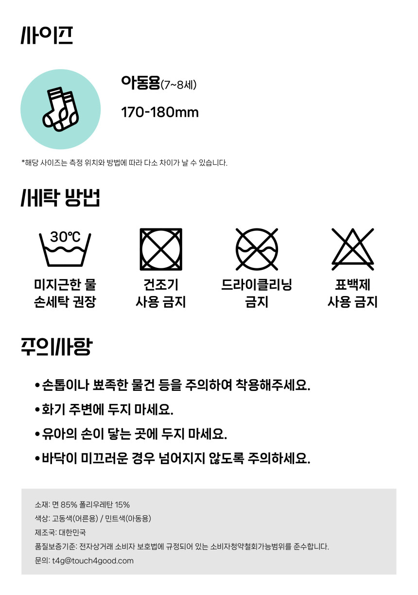 아동용 양말은 수달이 행복하고 건강하게 살 수 있는 한강의 물색으로 디자인했습니다.