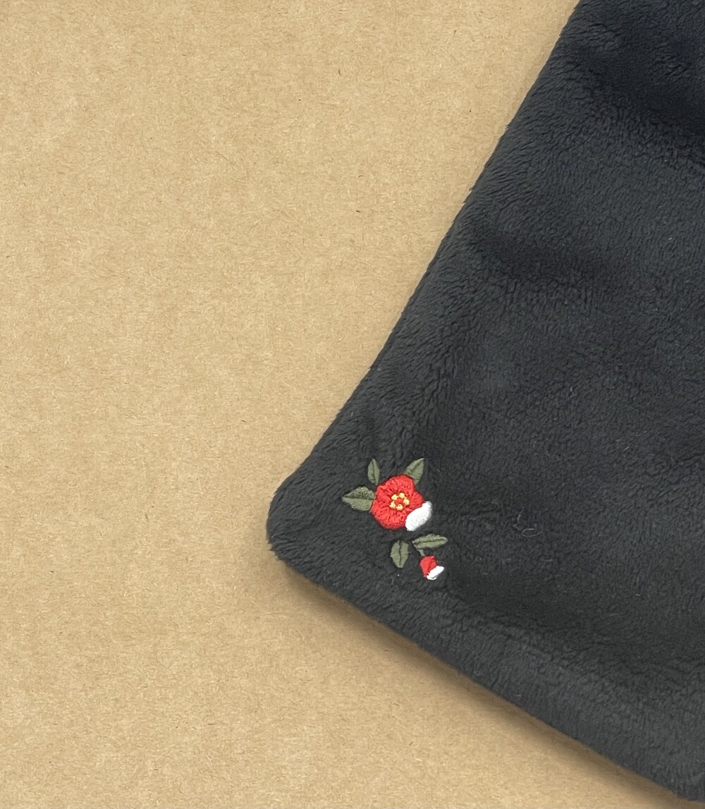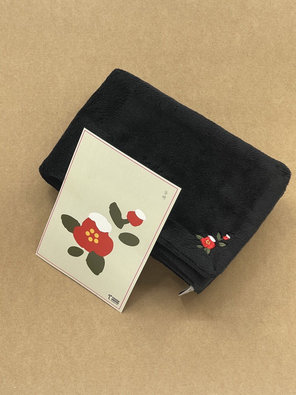 모서리 부분에 겨울에 아름답게 피는 동백 자수 가 드러납니다.