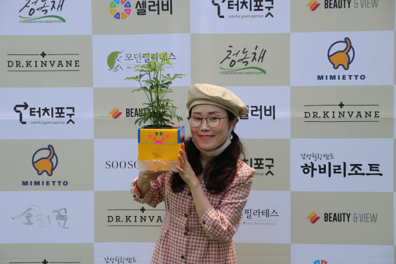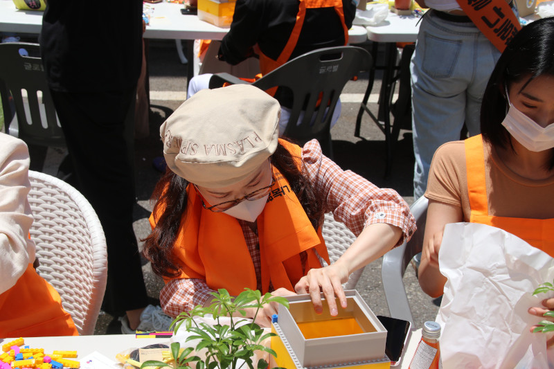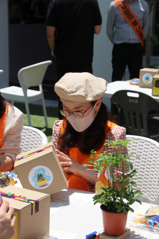 뜨거운 햇살에 마스크까지 쓰고 많이 더웠지만 예쁘게 만들어서 팬들과 소통하고, 수익금도 기부된다고 하니 바로 집중모드로 변신!