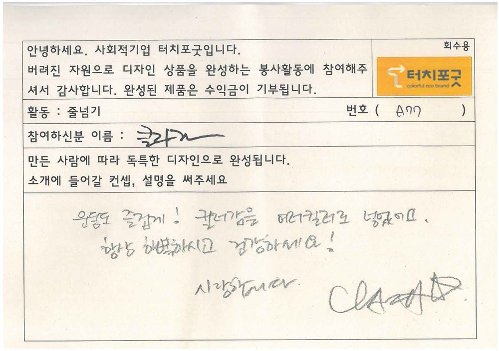 “운동도 즐겁게! 컬러감을 여러컬러로 넣었어요. 항상 행복하시고, 건강하세요! 사랑합니다.”