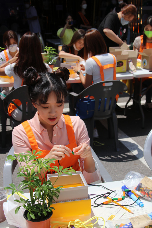 뜨거운 햇살에 마스크까지 쓰고 많이 더웠지만 예쁘게 만들어서 팬들과 소통하고, 수익금도 기부된다고 하니 바로 집중모드로 변신!