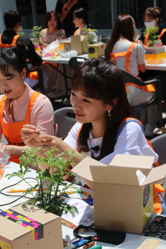 뜨거운 햇살에 마스크까지 쓰고 많이 더웠지만 예쁘게 만들어서 팬들과 소통하고, 수익금도 기부된다고 하니 바로 집중모드로 변신!