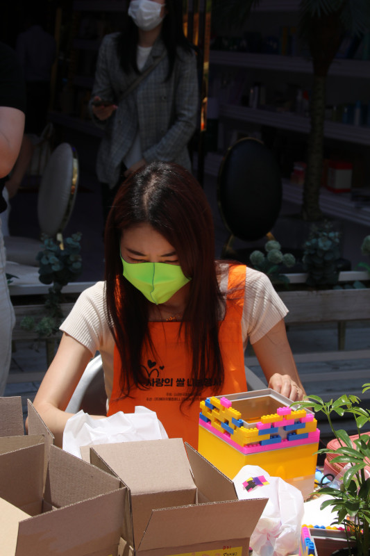 뜨거운 햇살에 마스크까지 쓰고 많이 더웠지만 예쁘게 만들어서 팬들과 소통하고, 수익금도 기부된다고 하니 바로 집중모드로 변신!