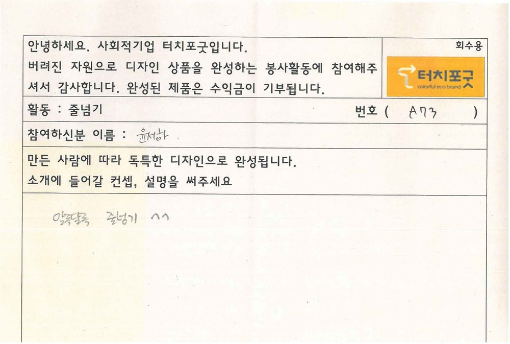 세상에 하나뿐인 업사이클 비즈줄넘기를 받아보실분 선착순 딱 1분만 가능합니다!