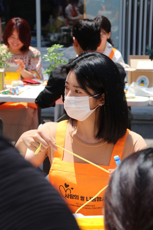 뜨거운 햇살에 마스크까지 쓰고 많이 더웠지만 예쁘게 만들어서 팬들과 소통하고, 수익금도 기부된다고 하니 바로 집중모드로 변신!