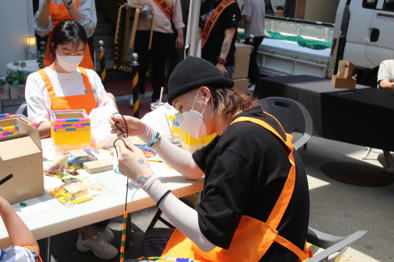 뜨거운 햇살에 마스크까지 쓰고 많이 더웠지만 예쁘게 만들어서 팬들과 소통하고, 수익금도 기부된다고 하니 바로 집중모드로 변신!
