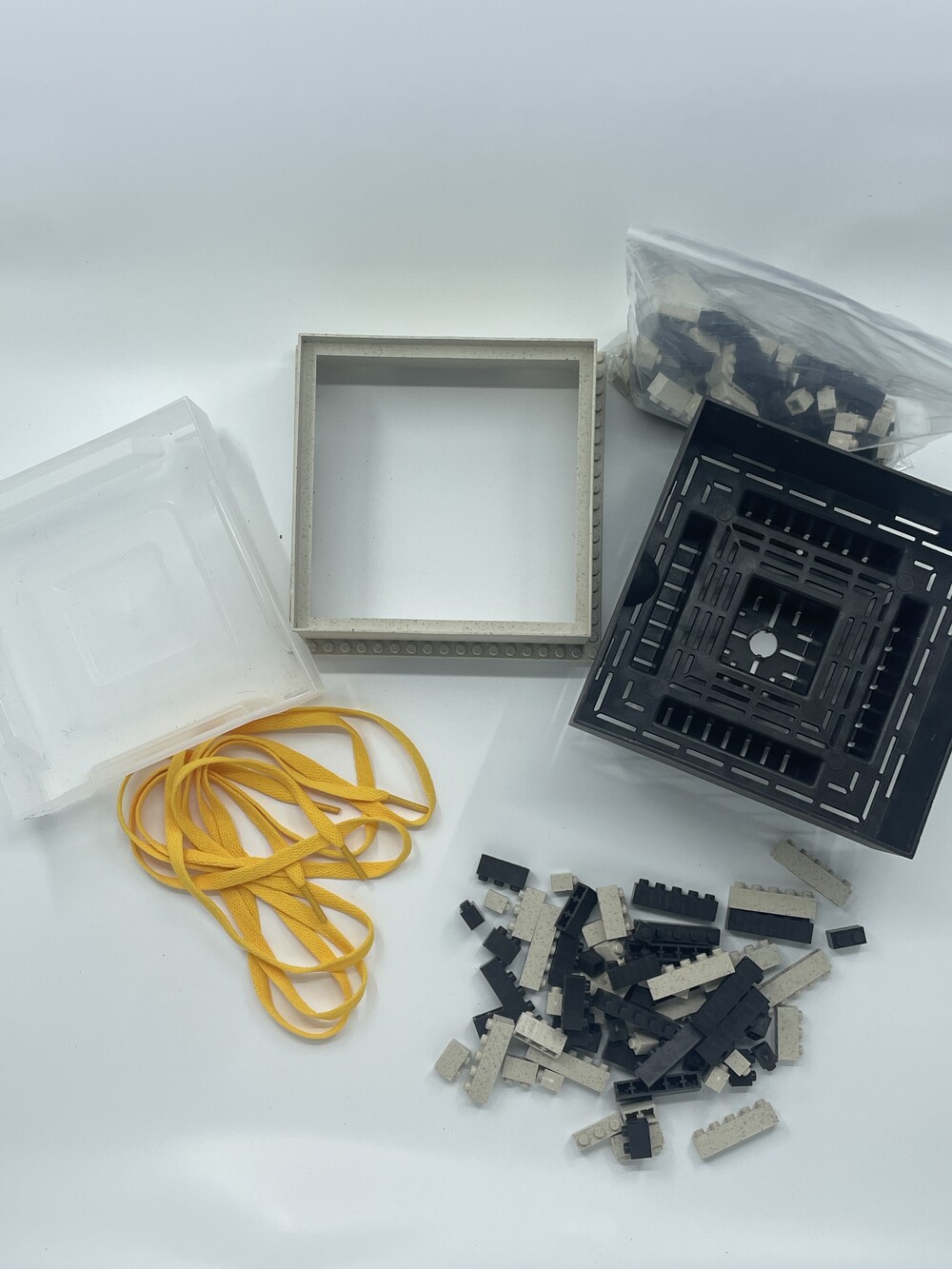 물받침과 몸통을 직접 조립하고, 두가지 색깔의 블록을 이용해