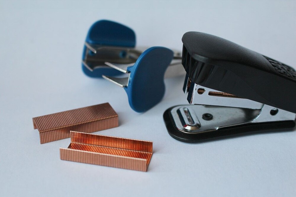 부피를 차지 하지 않고 간단히 서류를 묶어주는 스테이플러.