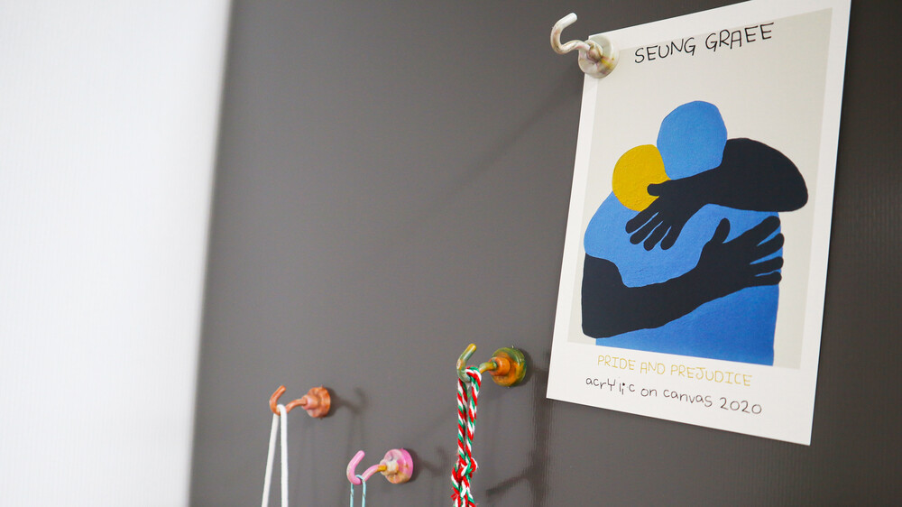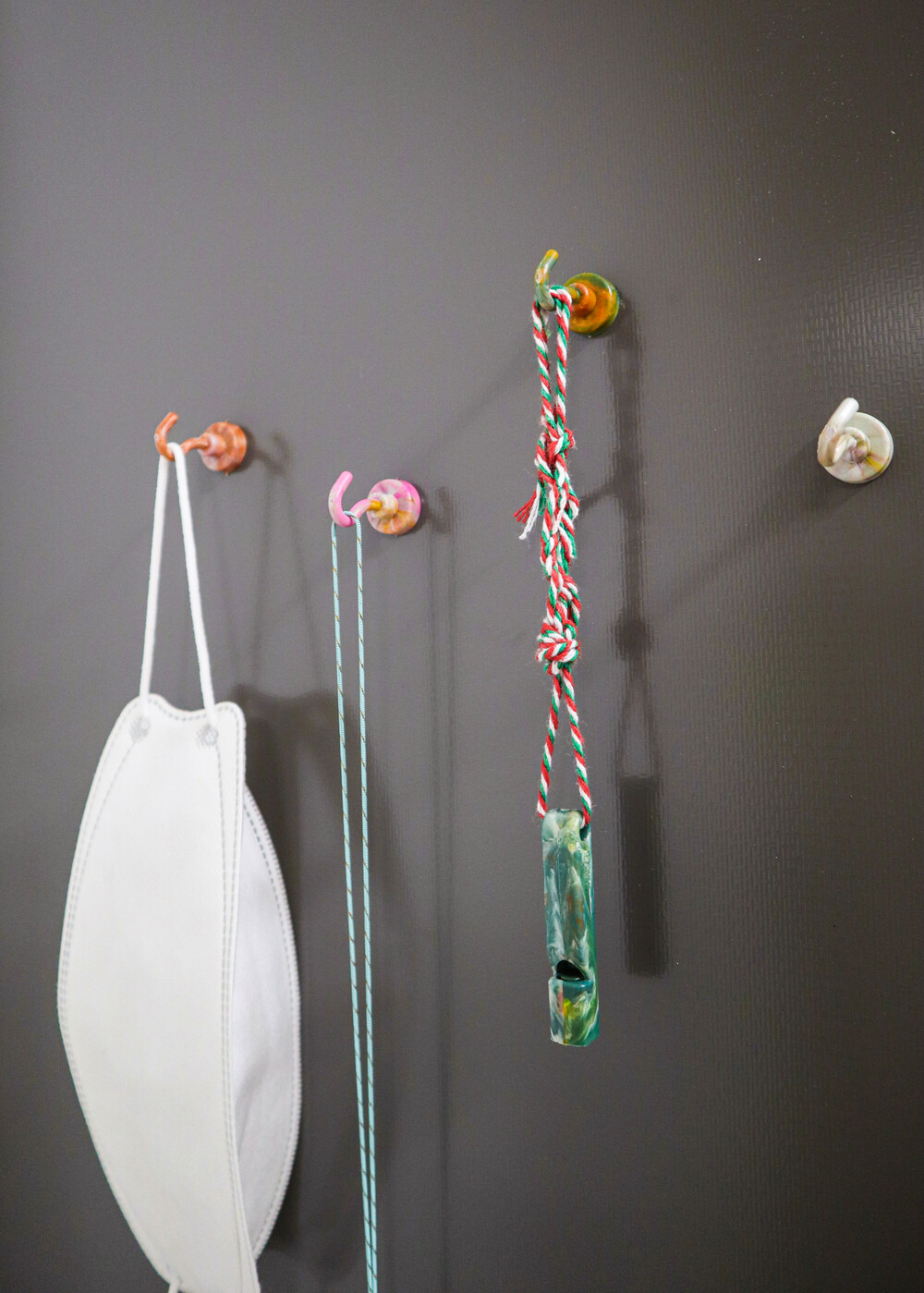 - 마스크를 포함한 가벼운 생활물품을 걸어둘 수 있는 업사이클링 고리.