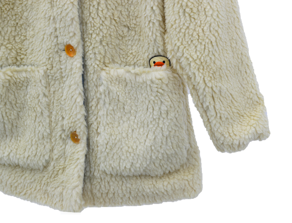 '덕 에이드(duck aid)' 라인에는 플리스자켓과 담요가 있어요.