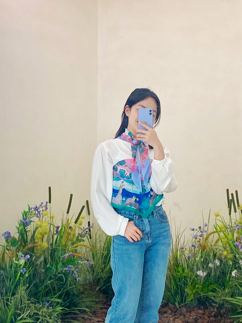 업사이클 쉬폰원단에 스카프로 담아봤습니다.