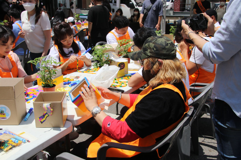뜨거운 햇살에 마스크까지 쓰고 많이 더웠지만 예쁘게 만들어서 팬들과 소통하고, 수익금도 기부된다고 하니 바로 집중모드로 변신!