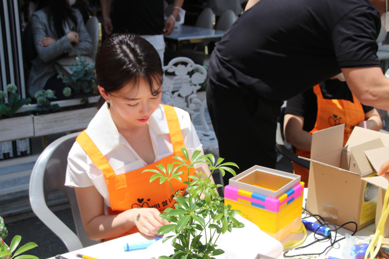 뜨거운 햇살에 마스크까지 쓰고 많이 더웠지만 예쁘게 만들어서 팬들과 소통하고, 수익금도 기부된다고 하니 바로 집중모드로 변신!