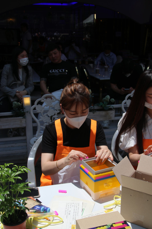 뜨거운 햇살에 마스크까지 쓰고 많이 더웠지만 예쁘게 만들어서 팬들과 소통하고, 수익금도 기부된다고 하니 바로 집중모드로 변신!