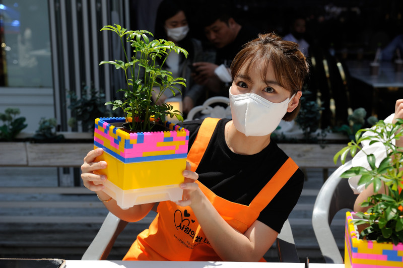 색색의 블록들을 꾹꾹 눌러담아 세상에 하나뿐인 화분을 디자인했습니다.
