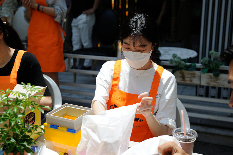 뜨거운 햇살에 마스크까지 쓰고 많이 더웠지만 예쁘게 만들어서 팬들과 소통하고, 수익금도 기부된다고 하니 바로 집중모드로 변신!