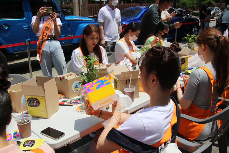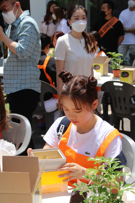 뜨거운 햇살에 마스크까지 쓰고 많이 더웠지만 예쁘게 만들어서 팬들과 소통하고, 수익금도 기부된다고 하니 바로 집중모드로 변신!